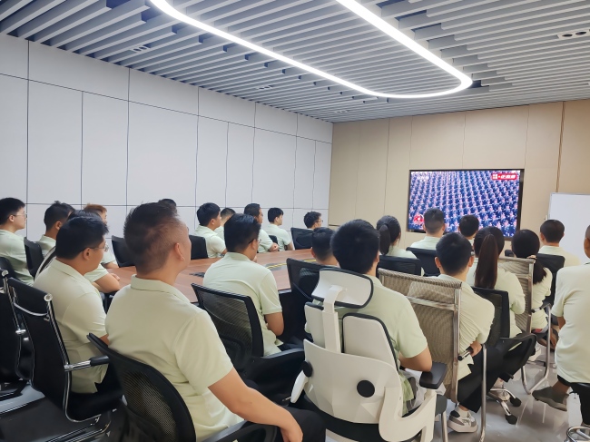 隨著(zhù)閱兵盛典的開(kāi)始,全體員工已整裝待發(fā),或坐在各自的辦公室,或聚集在五樓大會(huì )議室,共同期待著(zhù)閱兵式的開(kāi)始。這一刻,每個(gè)人的心中都充滿(mǎn)了對歷史的敬畏與對和平的珍惜。直播畫(huà)面中,雄壯的國歌聲響起,鮮艷的五星紅旗冉冉升起,那一刻,我們仿佛穿越了時(shí)空,回到了那個(gè)烽火連天的年代。無(wú)數先烈用鮮血和生命換來(lái)了今天的和平與繁榮,他們的英勇事跡將永遠銘記在我們心中。