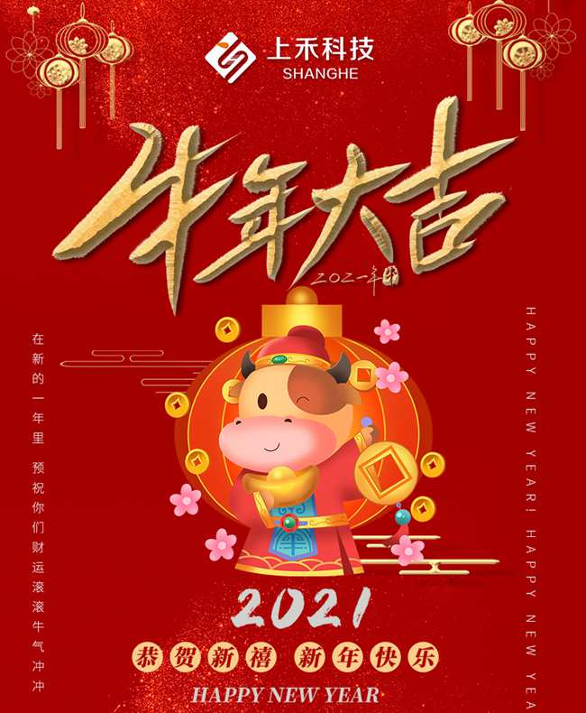 新年的祝福和希望,已經(jīng)踏著(zhù)月光靜靜地融在雪地里,它們隨著(zhù)春天生長(cháng),送給您一年的豐碩與芬芳!牛年快樂(lè )!萬(wàn)事如意!新年的鐘聲已經(jīng)響起,愿這吉祥的鐘聲能為您及家人帶來(lái)平安、幸福、健康和快樂(lè )!上禾科技全體員工給大家拜個(gè)早年啦!
