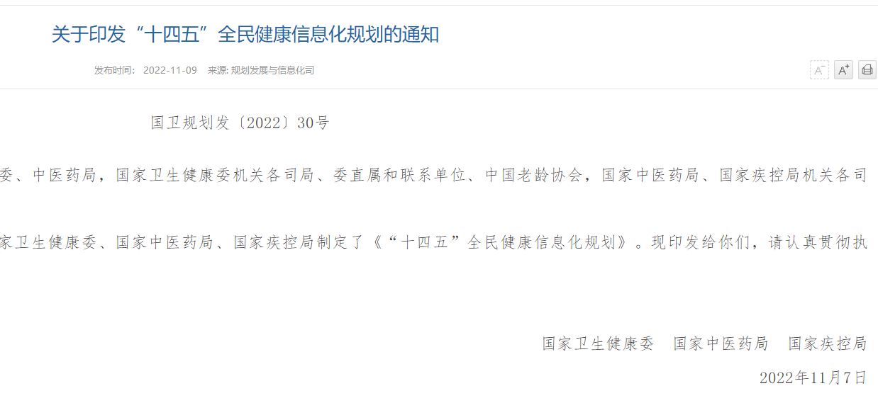 關(guān)于印發(fā)《“十四五”全民健康信息化規劃》通知的解讀